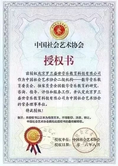 中国社会艺术协会任命罗兰教育为常务理事单位,并成立中国社会艺术协会数字音乐教育委员会,独家负责全国范围内数字音乐教育的教学研究、咨询、指导、服务等工作。